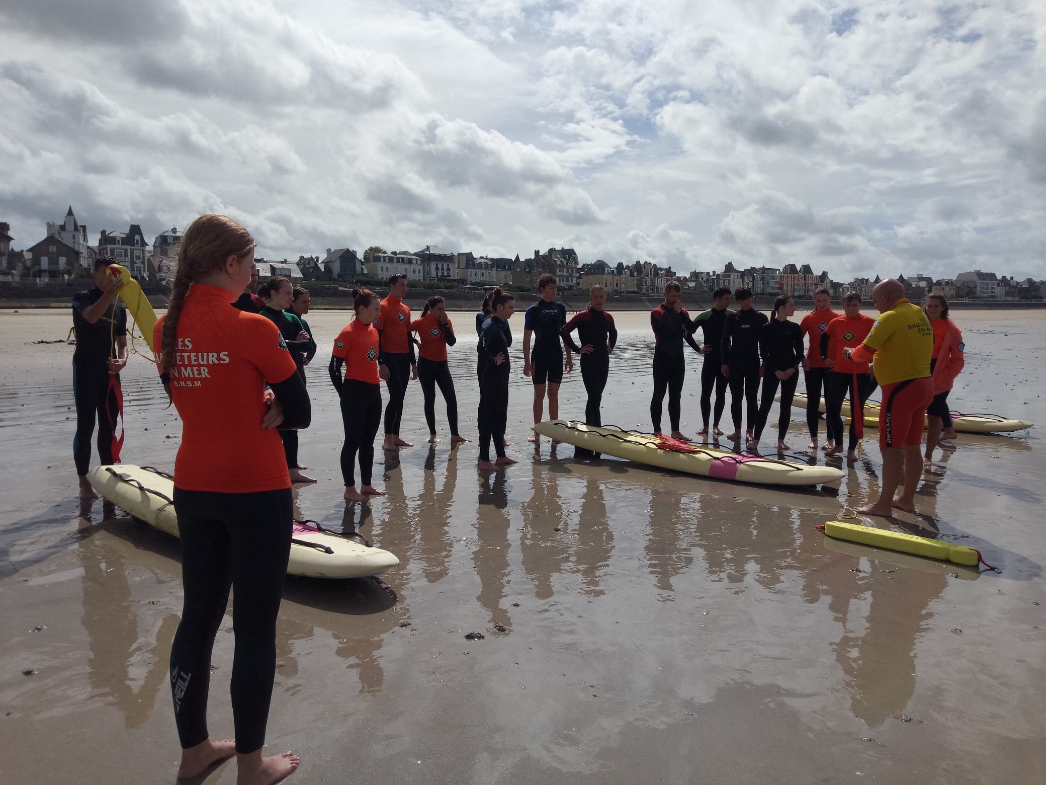 Visite du centre de secours et de la vedette de la SNSM, activités physiques sur la plage de St Malo en lien avec le secourisme, entraînement avec du matériel de secourisme…